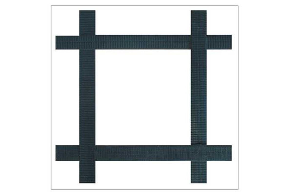 以高强钢丝(或其他纤维),经特殊处理,与聚乙烯(PE)或聚丙烯(PP),并添加其他助剂,通过挤出使之成为复合型高强抗拉条带,且表面有粗糙压纹,则为高强加筋土工带。由此单带,经纵、横按一定间距编制或夹合排列,采用特殊强化粘接的熔焊技术(超声波焊接技术)焊接其交接点而成型,则为钢塑土工格栅。